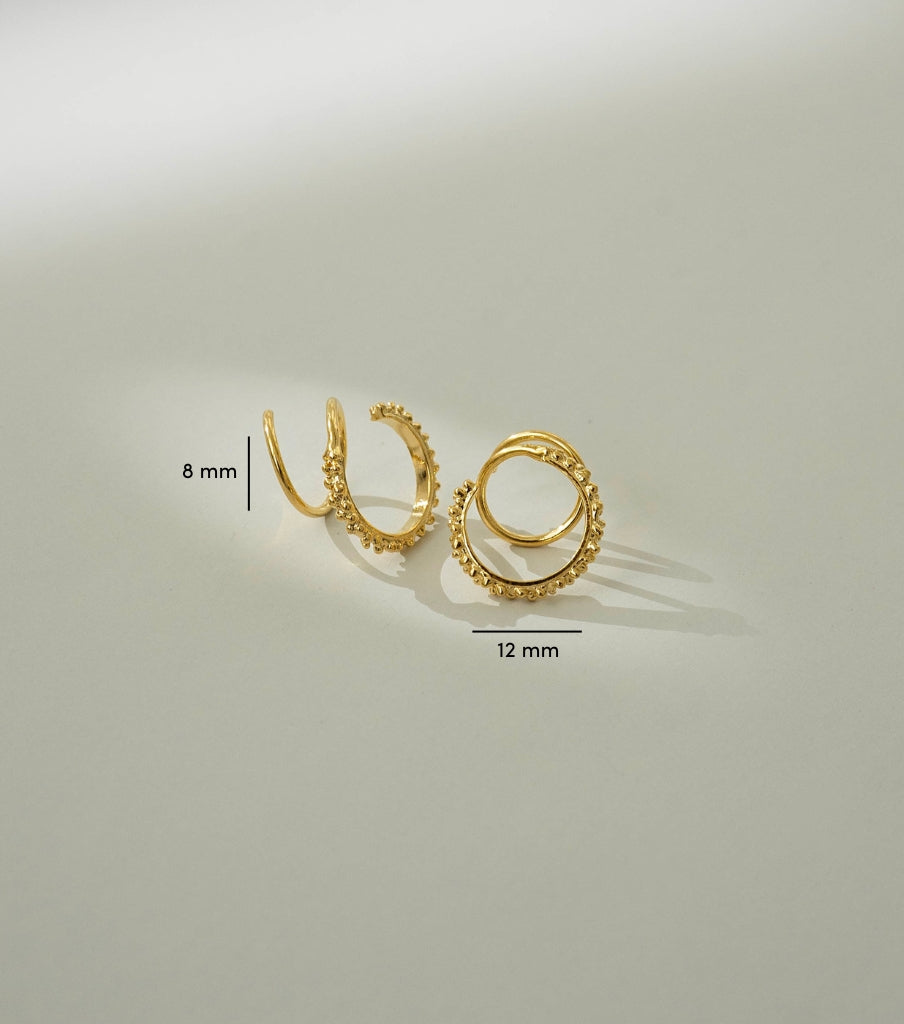 Één gaatje, twee ringetjes. Voor deze oorbellen heb je maar 1 gaatje nodig. Draai ze door je oor heen, zodat het lijkt alsof je twee ringetjes in hebt.