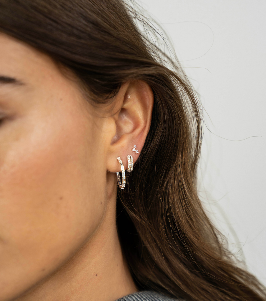 Onze everyday click oorbel met twee rijtjes subtiele cz steentjes voor een krachtige, mooie uitstraling.