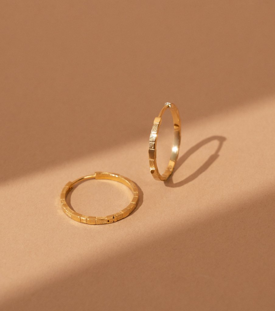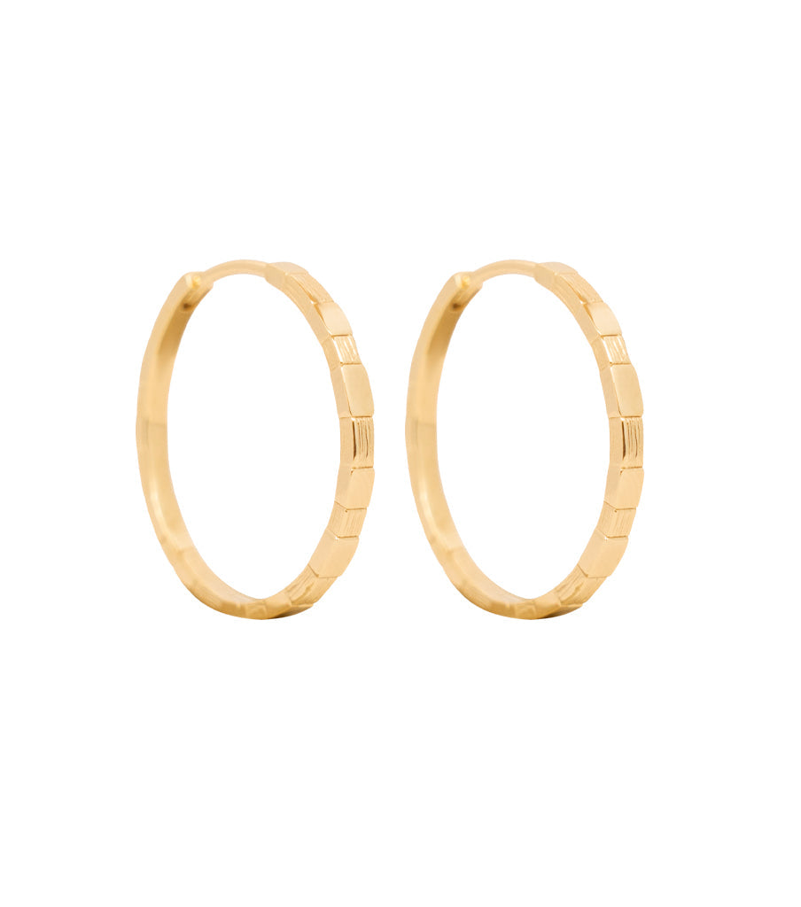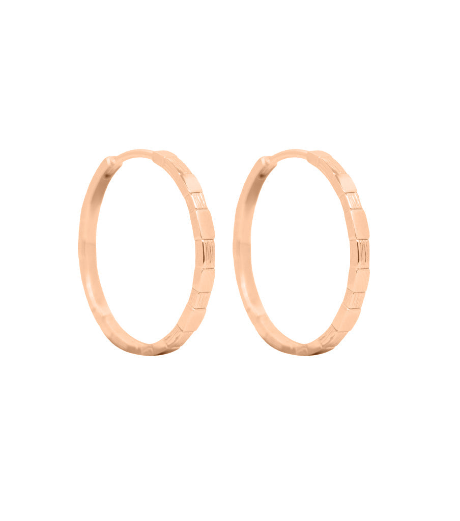 Oorbel met afwisselende vlakjes die gestreept en glad zijn met onze bekende click sluiting. Leuk om te combineren met onze andere click oorbellen.