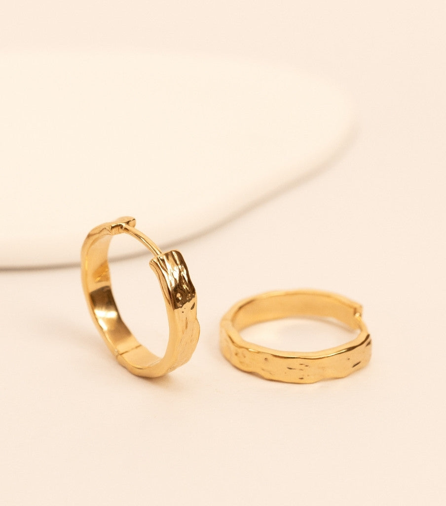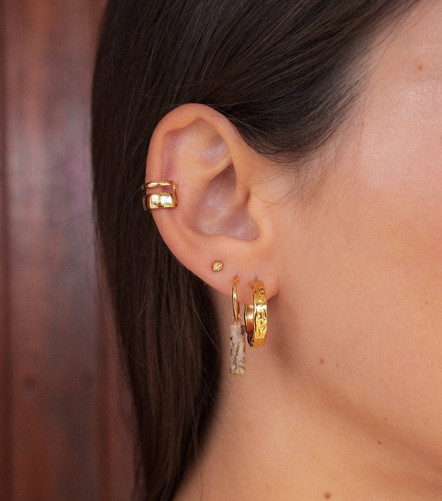Oneven oorbel met click sluiting en een speels golvend effect in het ontwerp. Leuk om te combineren met onze andere click oorbellen.