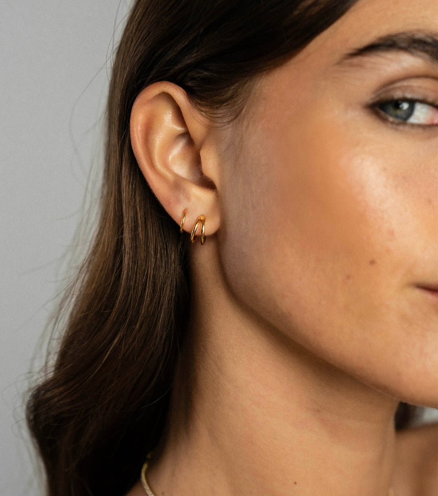 Onze populaire twister heeft er een stijlvolle variant bij: de trio twister. Geen twee, maar drie ringetjes in één oorbel. Draai hem subtiel door je oor en creëer moeiteloos de look van drie oorbellen tegelijk. Een verfijnd, minimalistisch design met een speelse twist, ideaal voor iedere dag.